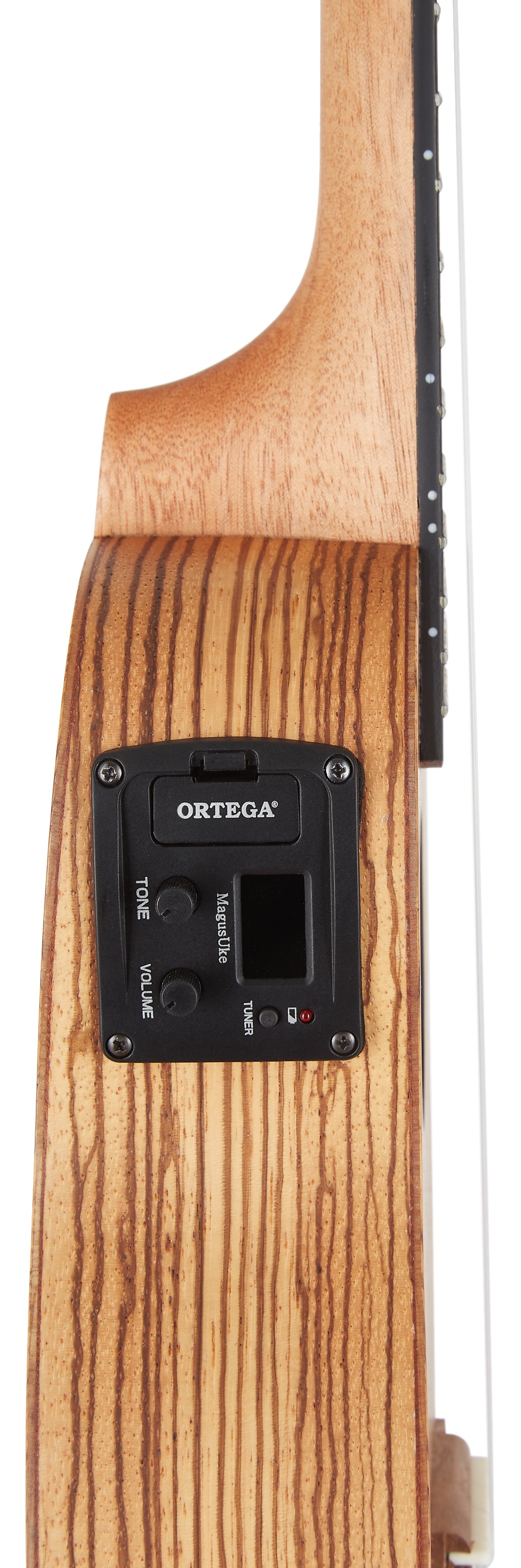 Elektroakustické ukulele Řada Friends značky Ortega nabízí kvalitně zpracované a cenově dostupné ukulele v sopránové a koncertní velikosti, které zakoupíte i s praktickým nástrojovým obalem (deluxe gig bag). Pokud začínáte s hrou na ukulele, potom by nástroje z řady Friends neměly uniknout vaší pozornosti. Tělo tohoto sopránového ukulele je vyrobeno z překližovaného zebrana (zebrawood). K mahagonovému krku přiléhá hmatník z ořechu osazený patnácti pražci a bílými pozičními tečkami. Struny jsou uchyceny v ko
